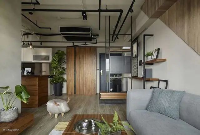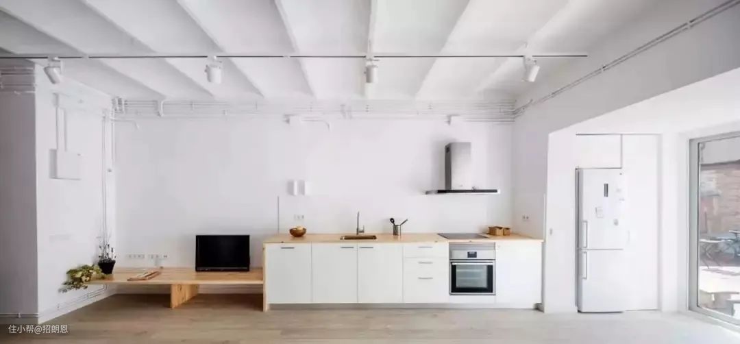 如果你家的管线是白色的,那么即使外露也很容易搭配哦~有一种工业风的“裸”装美感,不加修饰反而更显自由不羁。