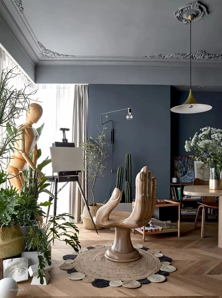 用黑色的美边线在天花的边角处走一圈,勾勒出天花的线条,或把美边线粘贴在阴角上,能让整个空间更立体、更有层次感。