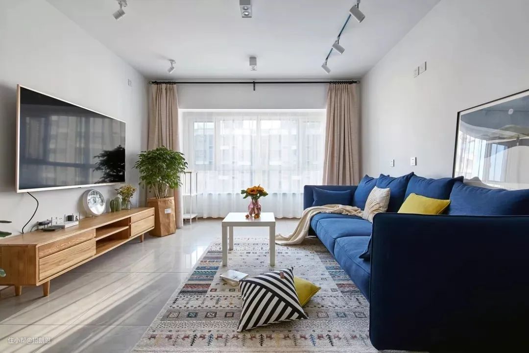 现在的客厅流行无主灯设计,采用筒灯、射灯代替中央吊灯,分布在客厅四周,让光线散布更加均匀。