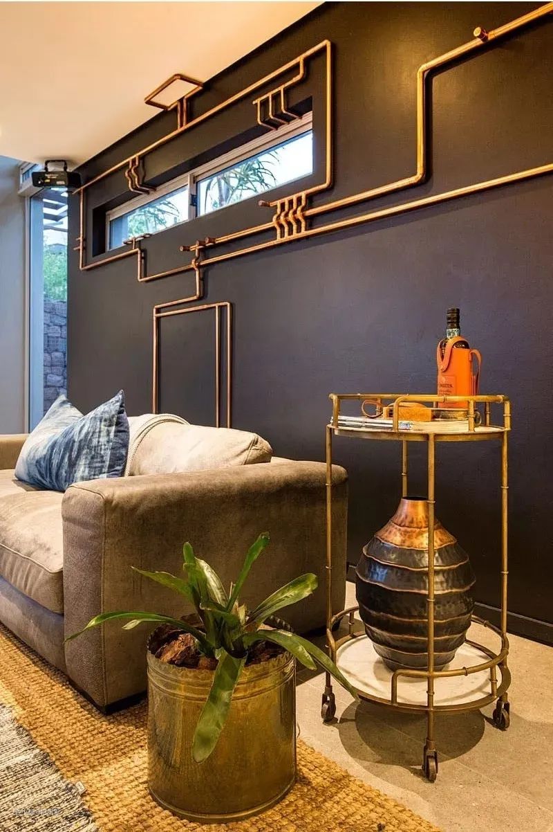 喜欢工业风的小伙伴,也可以换一种金属材质的管线,会有一种意想不到的效果哦。横竖不一的走线成为了流动的线条,让单调的墙体都多了几分灵动和创意。