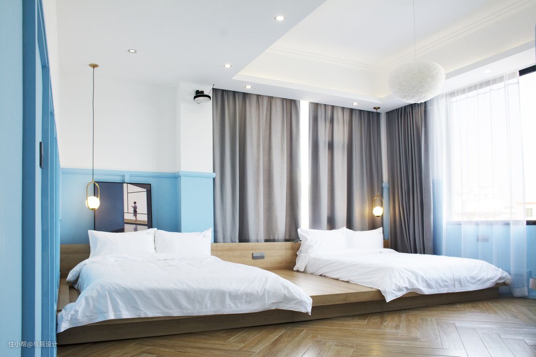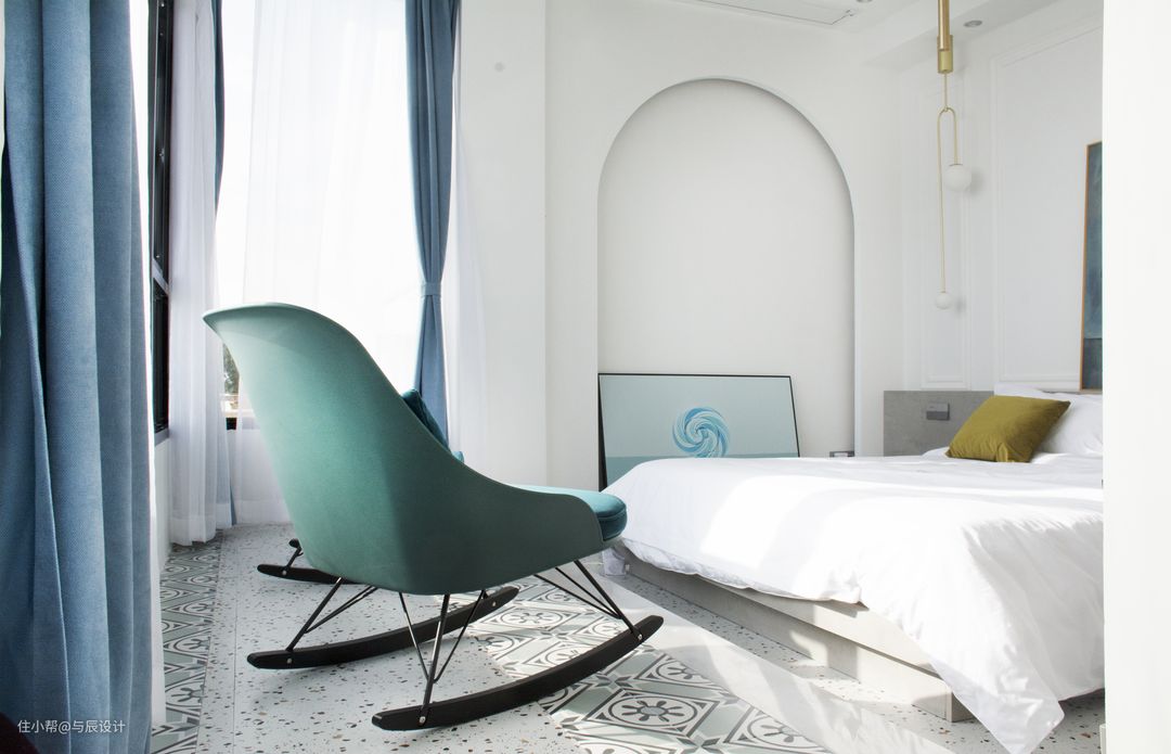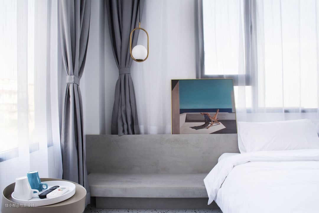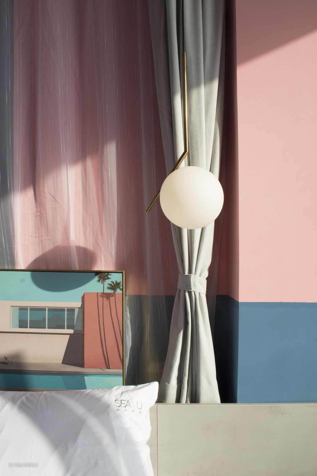 各个房间里根据客人的喜好让颜色成为空间里最自然的装饰,也将年轻时尚的生活气息延伸进室内。在不打破“住宿”这一基本功能的前提下,设计师希望让入住的客人有更好的体验,设计上通过色彩,材质,空间景观的营造无意中给客人带来更多的惊喜。整体设计上有意识的增进人与人、人与空间、空间与海的互动。