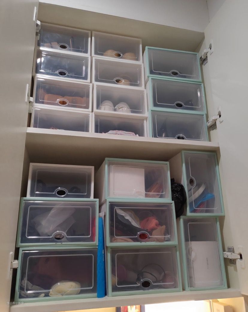 鞋子收纳除了大鞋柜以外,还看到很多人入手这款透明塑料鞋盒,很多小鞋柜以及租房党不知道的情况下就买了很多。实际上这种鞋盒光组装就非常麻烦,塑料材质并没有很挺括,承重能力也很一般。