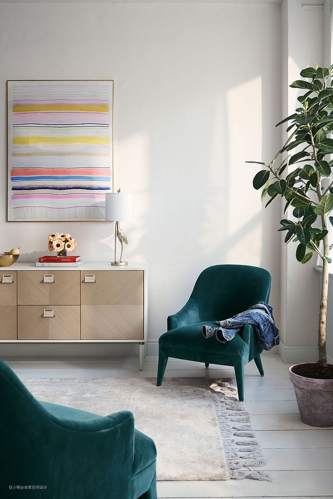 墨绿色的椅子可以说是家居的宠儿了,不是很挑空间,在哪里都很亮眼。其次是墨绿色的沙发,即使是四面白墙的简单装修,一款墨绿色的沙发也可以让空间变得独特而个性。搭配同色系的窗帘或是绿植便能搭配出风格主调。