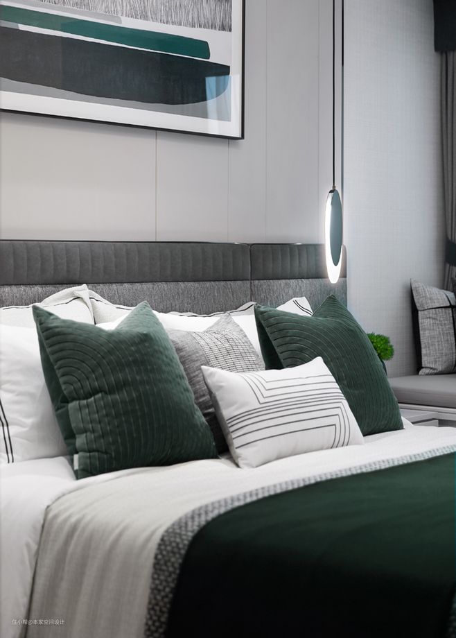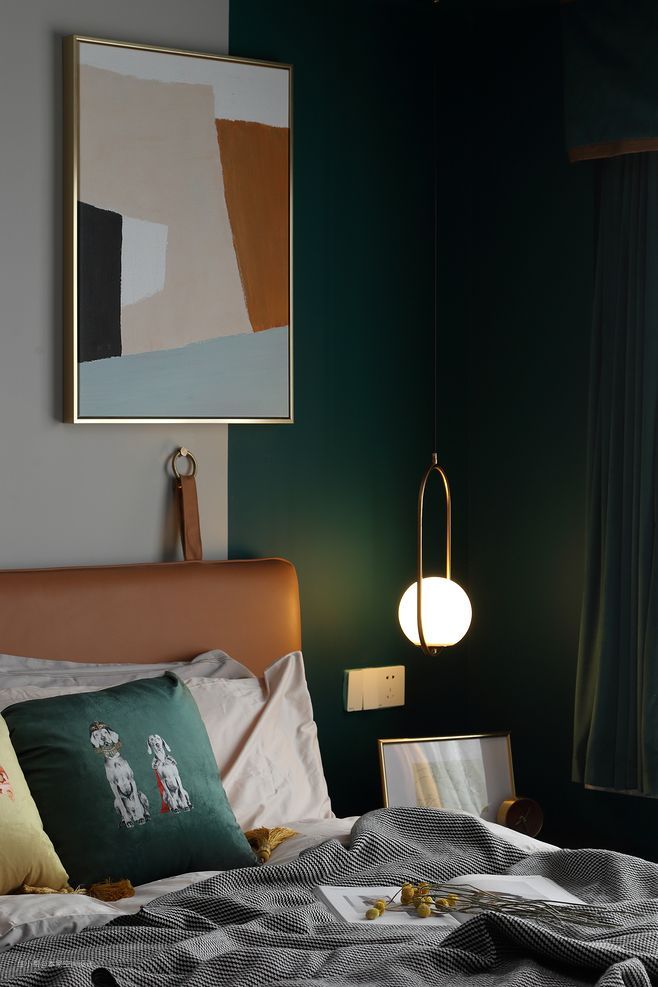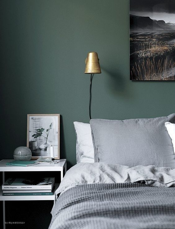偏灰色度的墨绿色配上简约灰白色的家居非常适合营造简约大方的北欧风格;加入蓝色调的墨绿色则更给人以整洁清新之感;而更加偏蓝绿色的墙面则更加普适,配以多元的墙面装饰更别具一格。