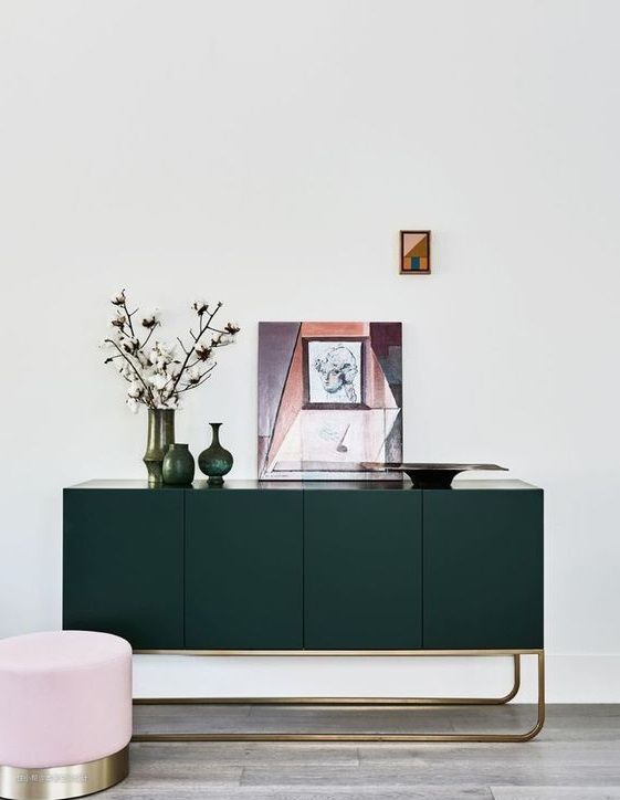 墨绿色的柜子也很独特。需要注意的是墨绿色的使用常常伴随着金属的运用,同样的高贵质感使得其常常一同出现。