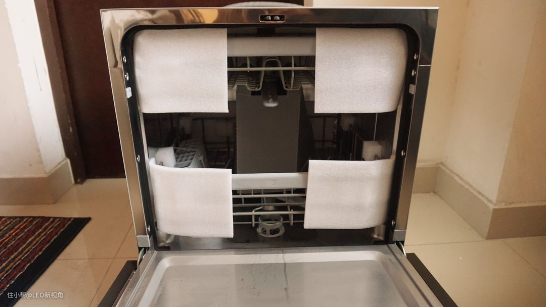 内部包装,四圈都做了严密的保护,洗碗机对于密封性要求比较高,所以,轻微的磕碰都可能造成产品变形,那基本这台洗碗机就很容易漏水。而漏水也是目前洗碗机中出现频次最高的问题了,几乎每家品牌都会有碰到,这个和运输以及组装过程都有很大的关系。