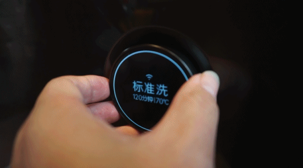 操作主要是两个部分,旋钮主要是用来选择洗涤模式,中间是一个LED屏幕,上面会显示洗涤时间,模式和水温等,选定好模式后,可以直接按压屏幕确定。如果有故障或者洗碗机门打开,屏幕上就会有对应的显示。右侧的按键是一个暂停开始键和一个开关键。