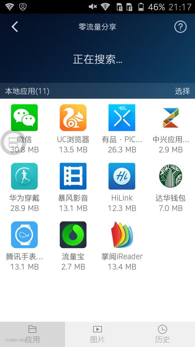 同时,零流量分享功能非常方便,处于同一网络内的智能设备可以零流量分享设备上的APP、媒体文件,哪怕没有安装包,已经安装的APP也可以轻松分享,非常之方便!