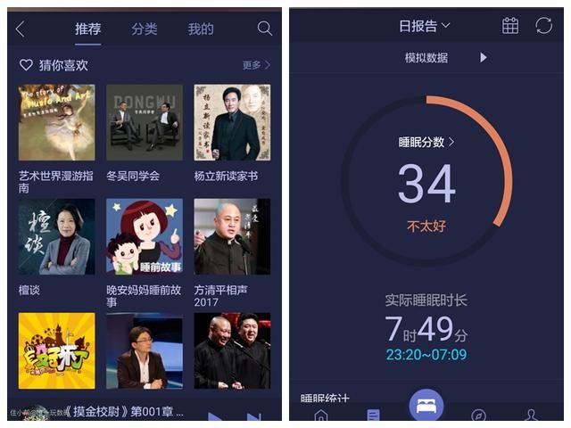 除了有睡前故事、助眠声乐等外,还连接了喜马拉雅FM平台,在喜马拉雅FM中具有很多内容可以选择;另外用户可以根据自己的喜好来进行相关设置;