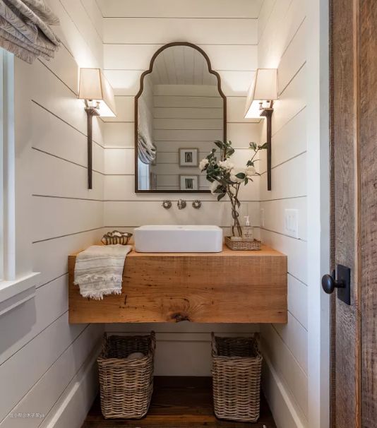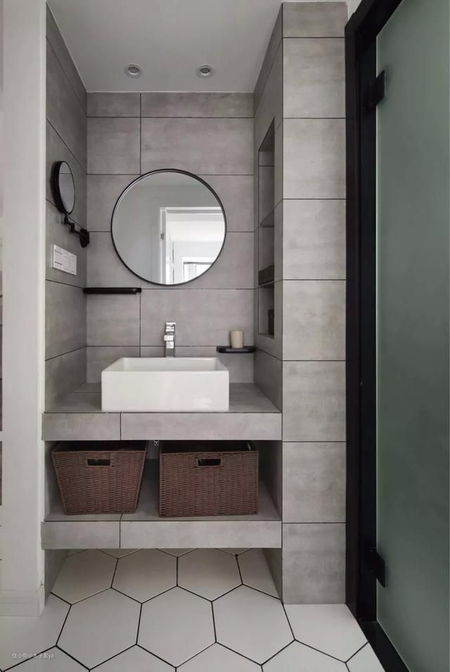 如果家人比较多,而浴室柜就会挂满各种颜色的毛巾,这时如果浴室柜放在距离客厅较近的地方,就会显得很凌乱。所以决定做浴室柜外移,要整理好浴室柜。