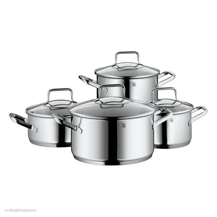 德国不锈钢锅的主要品牌是这几个:WMF、Fissler、双立人。双立人因为在中国做代工做的很早,中国国产产品的标准都比德国低,多年下来,口碑已经不如WMF、Fissler高级。但最近几年,WMF、Fissler的一些产品,也开始在中国国内,主要是广东的工厂代工,质量也有下降。