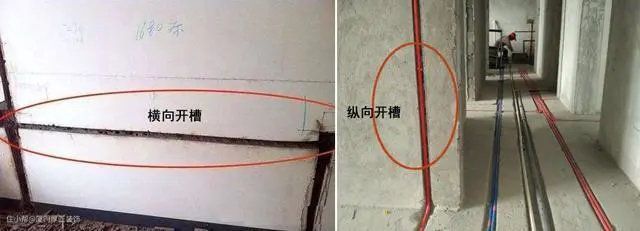 墙体横向开槽经常被人忽略,墙面横向开槽的跨度不能太大,因为在重力的作用下横向开槽很容易导致该位置下沉开裂,同时对楼体结构的强度也有影响。