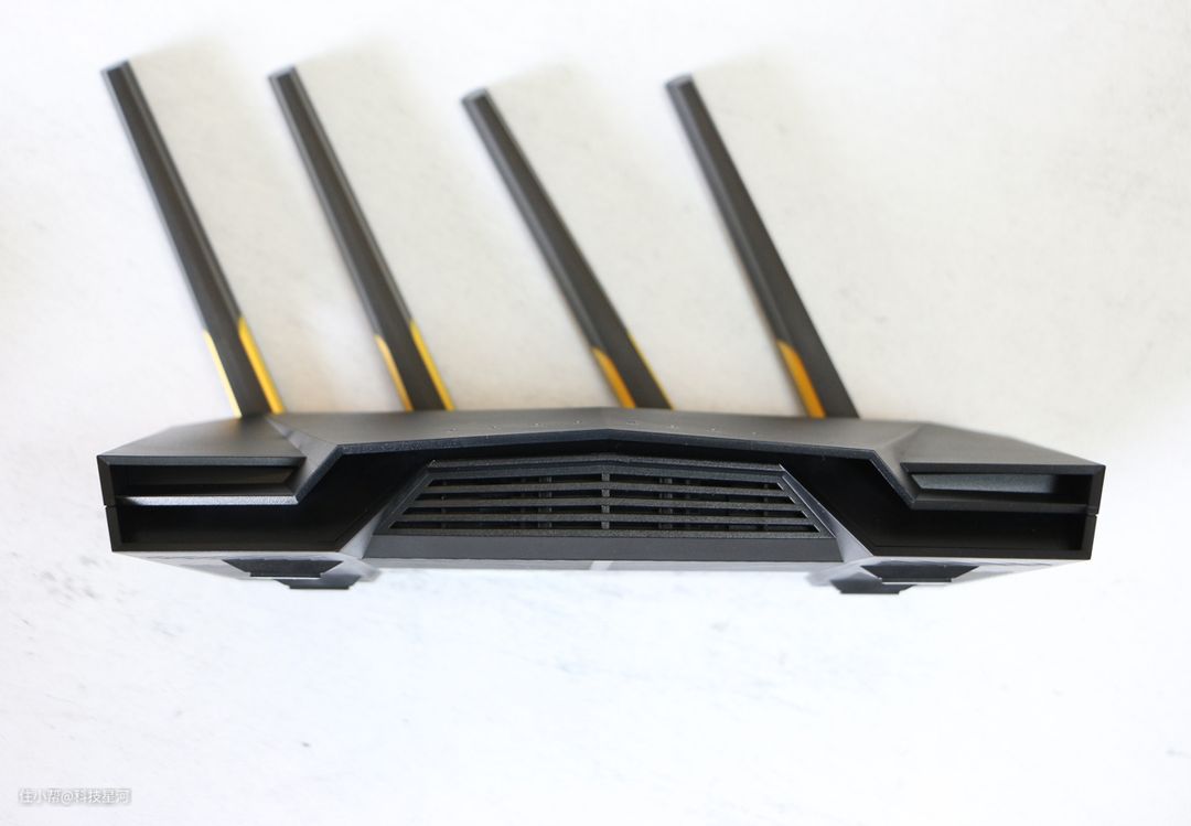 华硕TUF-AX3000电竞路由器在延续华硕路由器电竞化外观设计特点的同时,同时还加入了超跑造型设计,路由器线条硬朗、棱角分明。