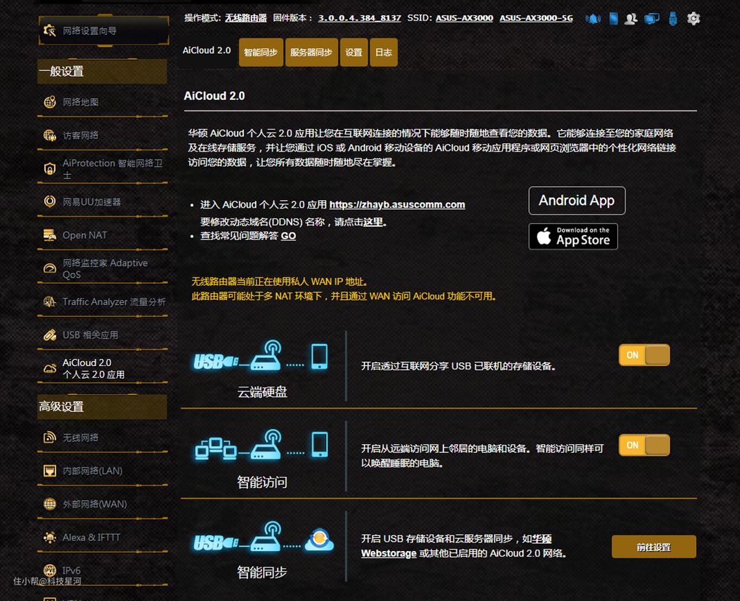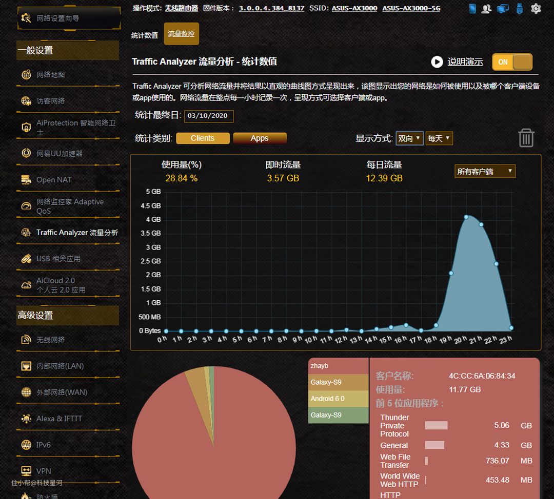 TUF-AX3000电竞路由器管理页面和其外观设计一样酷炫十足,设置项超级丰富。