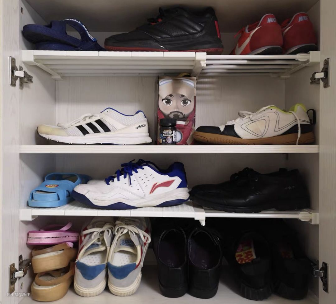衣柜隔板几乎适应家里的所有柜子,可仍有小伙伴说不好用,问了才知道,原来是对安装方式有误解,伸缩隔板的安装并不是直接卡在柜子里的,而是需要拧紧侧面的内锁。