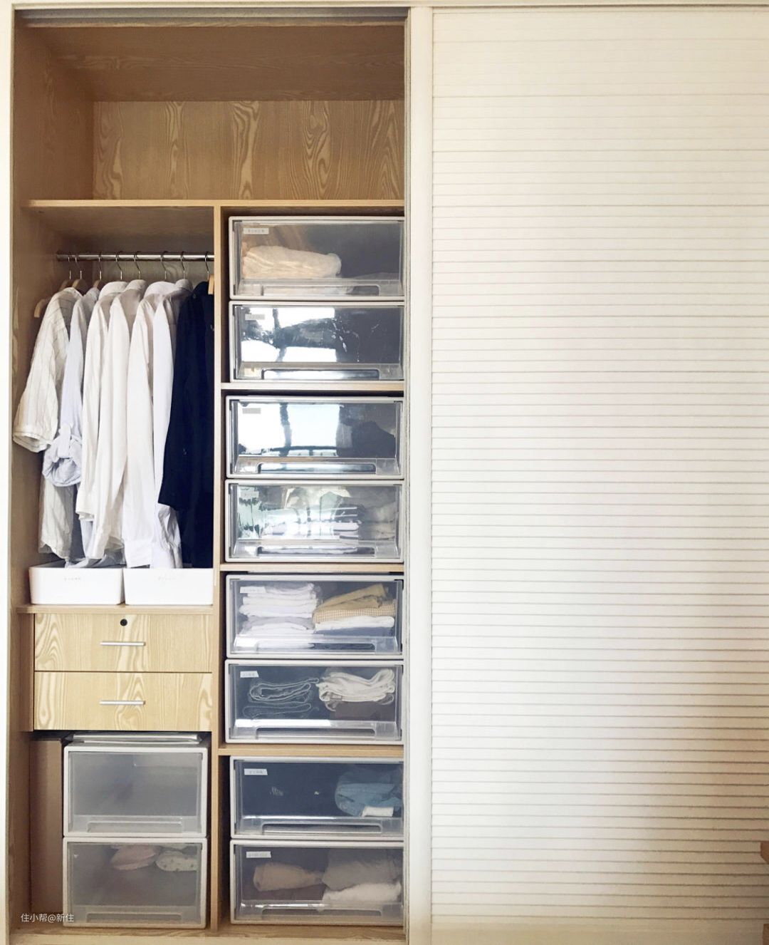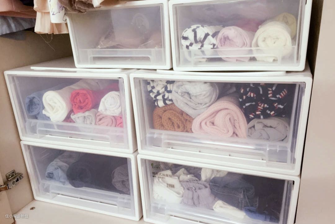 即便是像现在要换季,使用抽屉式收纳箱后也可以根据季节调整就好了,不需要对衣柜进行彻底大整理,给自己节省了很多的时间。