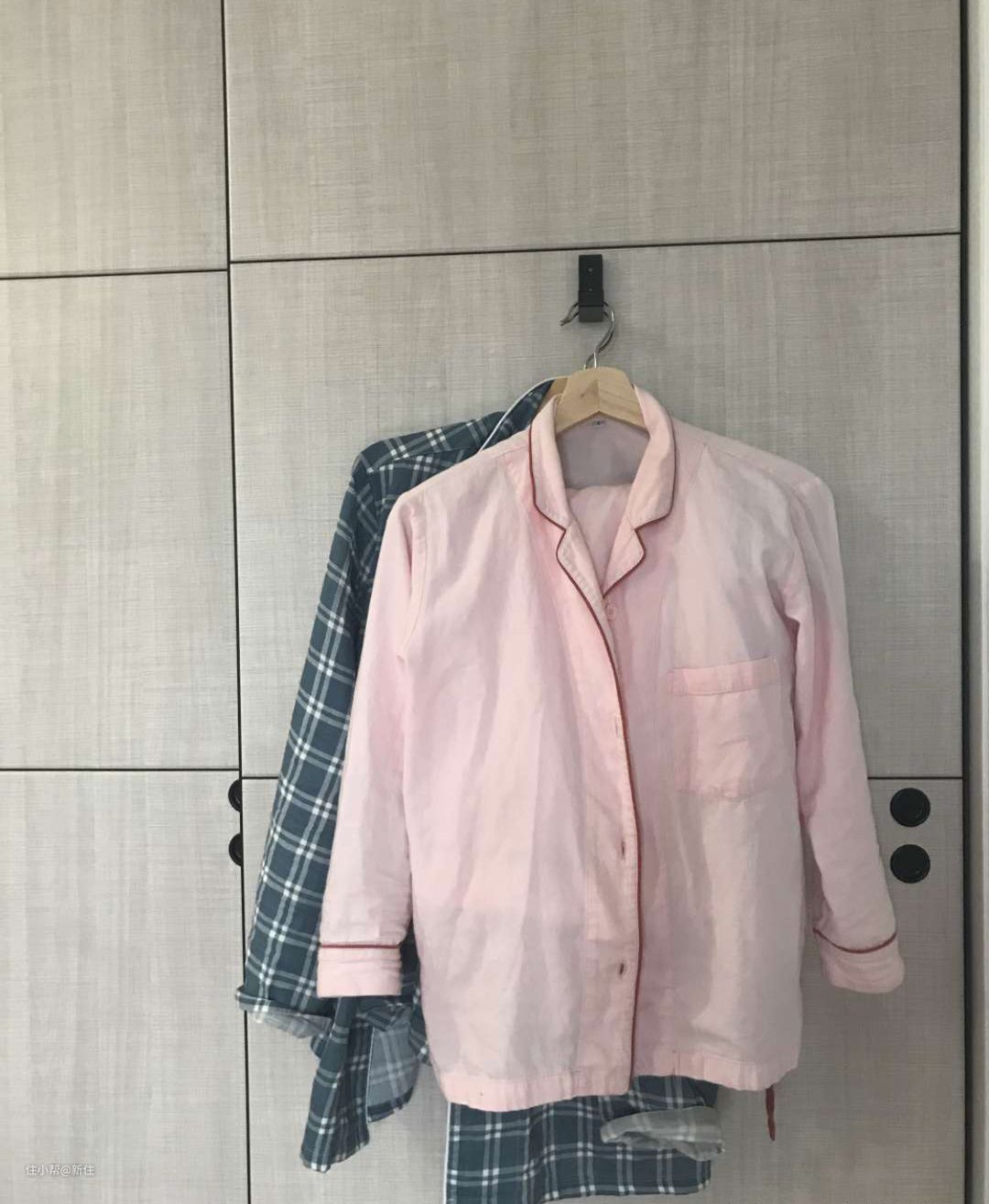 卧室的柜门外挂钩很多人说不好用也不好看,但日常又需要它挂睡衣或者家居服。