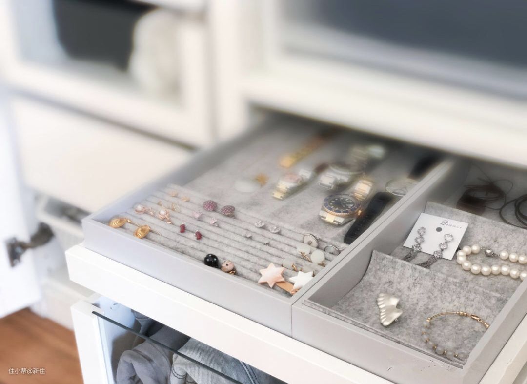 单个平板抽是稍有鸡肋的,但实际上它可以搭配这种饰品收纳盒,这样每天挑选衣服的时候,就能顺便挑选饰品,实用性瞬间提升。