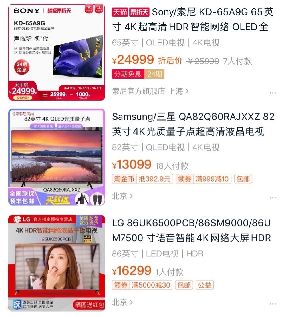 更不用说三星、LG和索尼的液晶屏电视。