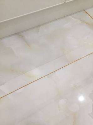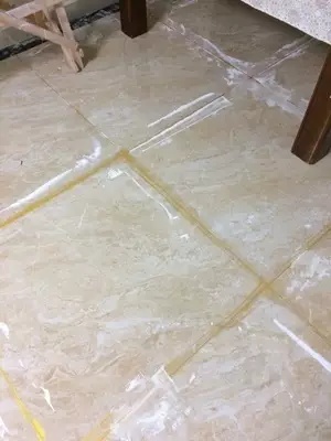 亮光平滑的瓷砖(主要有玻化砖、晶石砖、釉面砖等)可以不贴美纹纸,打好制剂之后用小刮板刮平,再用抹布(海绵)蘸花露水或者酒精及时清理溢出的部分就可以了。当然,固话状态好的话,小伙伴们还可以直接铲除瓷砖缝隙周边的制剂。