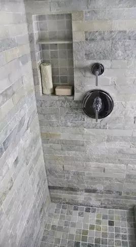 给深色的瓷砖搭配浅色制剂是最容易突出质感的做法。浅色的制剂会让你深色的瓷砖横向纵向排列都清楚分明。