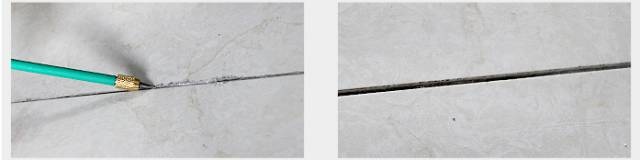 1、清缝(处理瓷砖缝隙):用清缝锥清理瓷砖缝隙中的木屑、渣滓等,如果清理后地砖缝隙是全空,需要先用填缝剂打底,然后留出 1.5 mm 的缝隙深度。