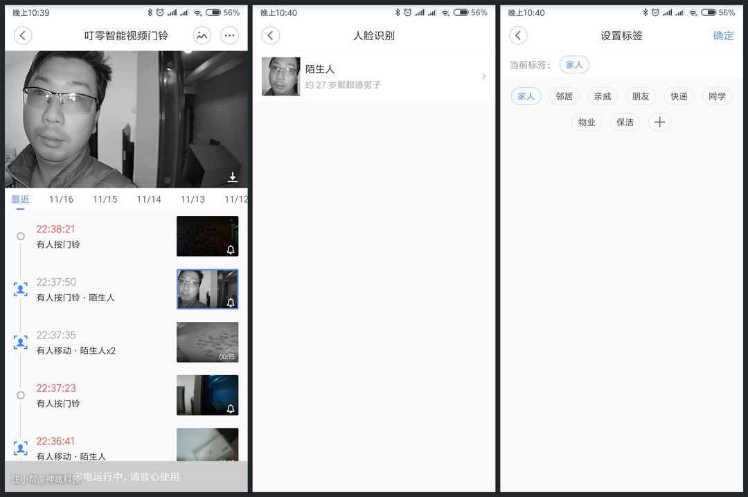 这款门铃基于小米AI人脸识别技术,可以精确的标记每一个人,并为其分组。当有人经过时,即可弹出标记提示。
