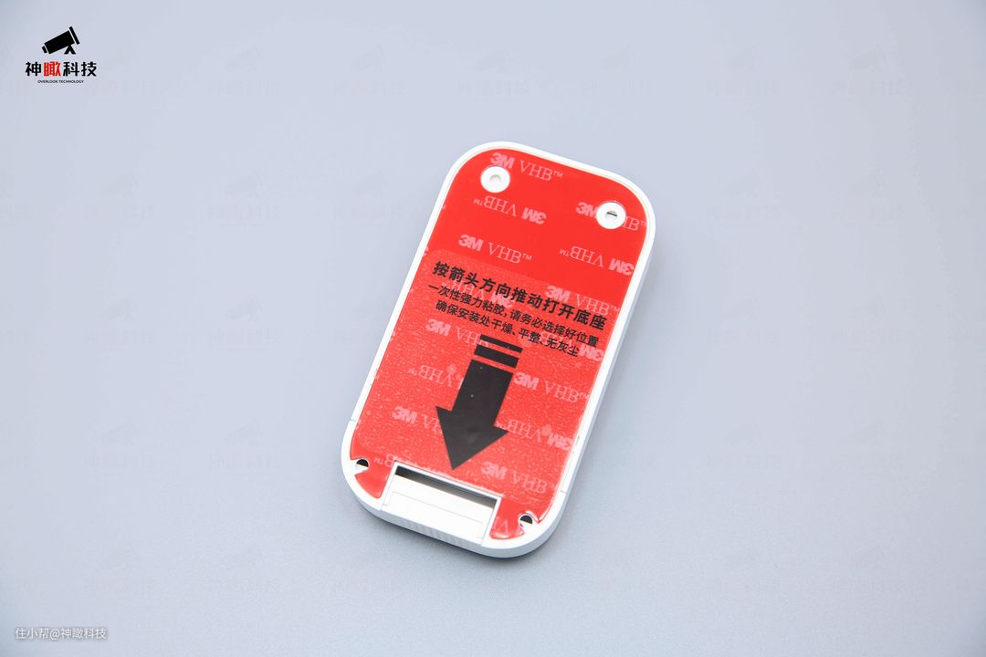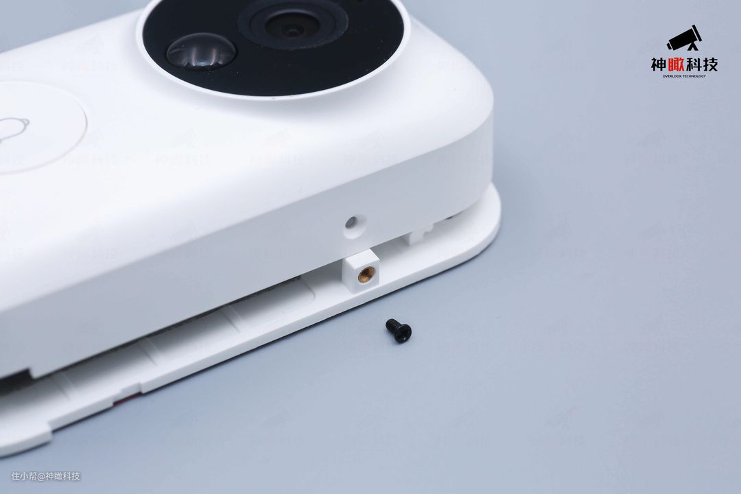 门铃背部采用了3M强力胶进行粘合,粘力据说可以同比铆钉,一侧还有锁定螺丝,并配有防拆报警,当有人拆卸门铃时便会触发报警。