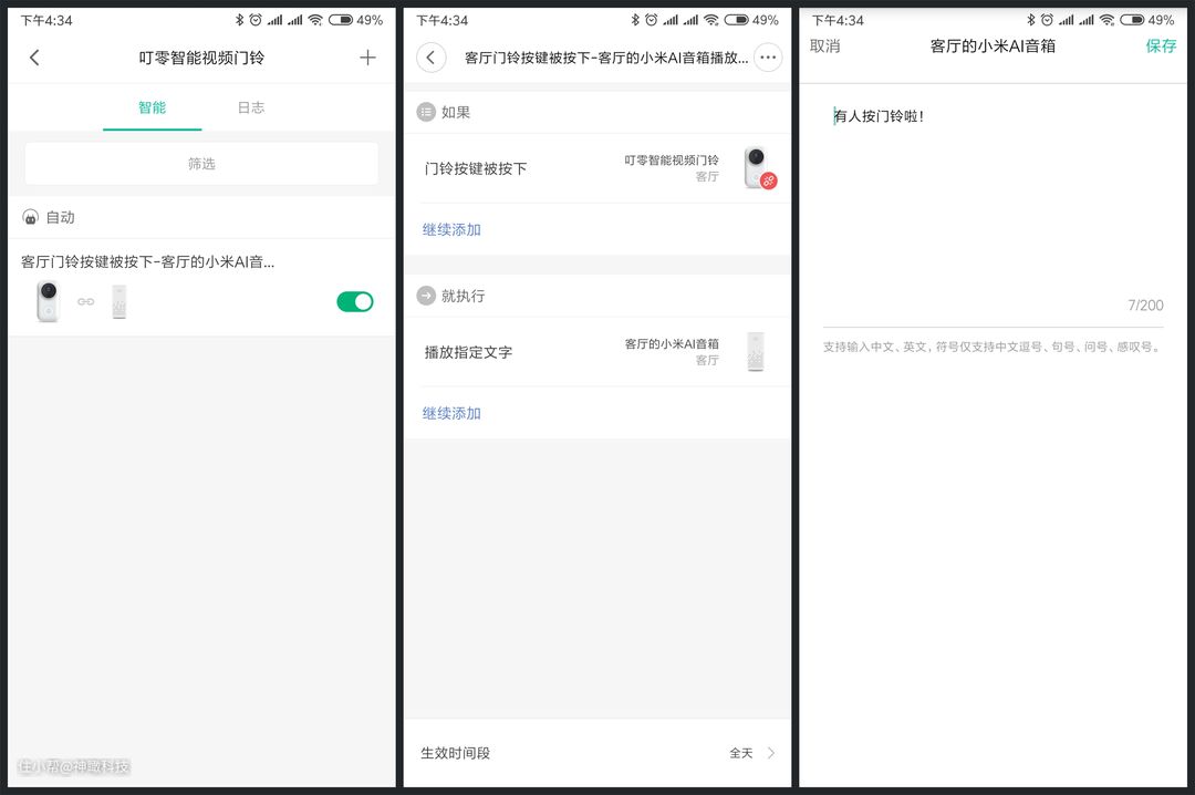 与其他门铃不同的是,叮零门铃与小爱同学连接后,当有访客按动门铃是,会通过小爱音箱提醒门口有人来访。