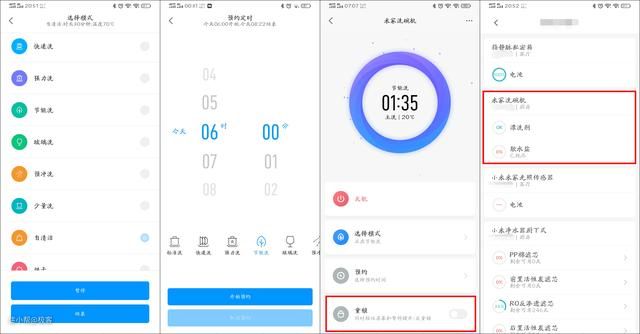 配对好之后,就可以正式进入这款洗碗机软件界面了,可以看到界面的设计非常简洁,想要找的功能一目了然。这里可以看到我们平时清洗的记录,以及观察漂洗剂和软水盐的使用情况。此外你还可以预约时间进行清洗,总之功能很丰富。哦,对了,它还有童锁的功能,锁定后就不怕熊孩子捣乱了。
