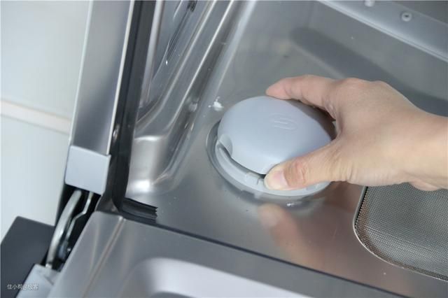 在滤网的左侧,则是软水盐的填注口,这样就可以将硬水(自来水)转化为软水,清洗完的餐具更加干净透亮,而且还不会有任何水渍变干后的残留痕迹,而且还可以保护洗碗机,使出水口不容易堵塞,延长使用寿命。