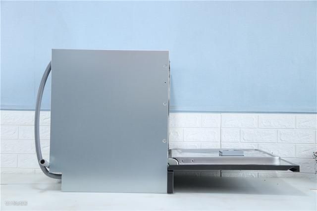 这款洗碗机的体积为:W595XH627XD520mm,开孔尺寸为:W560XH605XD520mm,标准的嵌入式身材,可以轻松适配各种橱柜。机身除前面板之外,其它面均为镀锌材质的金属面板,使用时间再长也不会生锈,在左侧面板上面还设计了一个圆形的散热孔,让其能有个稳定的内部温度。