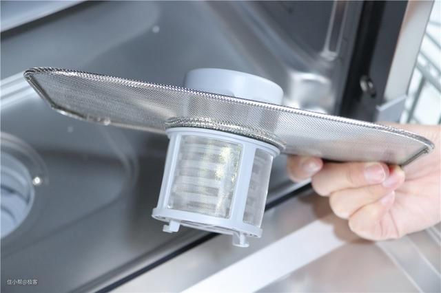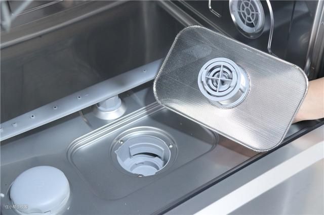 在过滤网方面,这款洗碗机设计了3层,在洗碗机内部下层就可以看到了,最为直观的就是不锈钢的金属滤网,将其旋转便可以拆卸下来,内部的两侧滤网就可以看到了,只不过是整合在一起的。三层设计,大块残渣,细小残渣以及微小残渣都是可以完整过滤的,日常的清理维护做起来也不费劲。