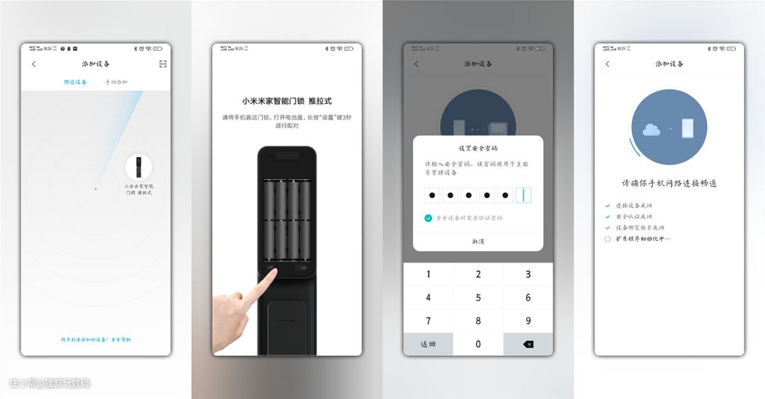 首先打开“米家”APP,指纹锁通电后长按设置键会自动发现设备,我们只需要点击图标按照提示一步步操作就好了,够简单吧。在添加设备时需要设置安全密码,改密码用于今后查看指纹锁验证,所以大家要牢记。