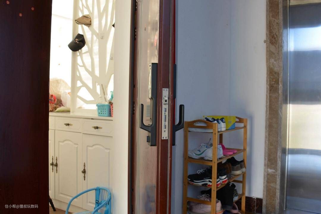 楼道有点窄不好拍照,这是装好后的样子,黑色磨砂面板可以百搭任何颜色的门。用惯了下压把手的指纹锁,突然换上推拉的还真有点不适应。安装完毕后师傅问我会不会用,我都30多个米家设备了所以就没让他教。