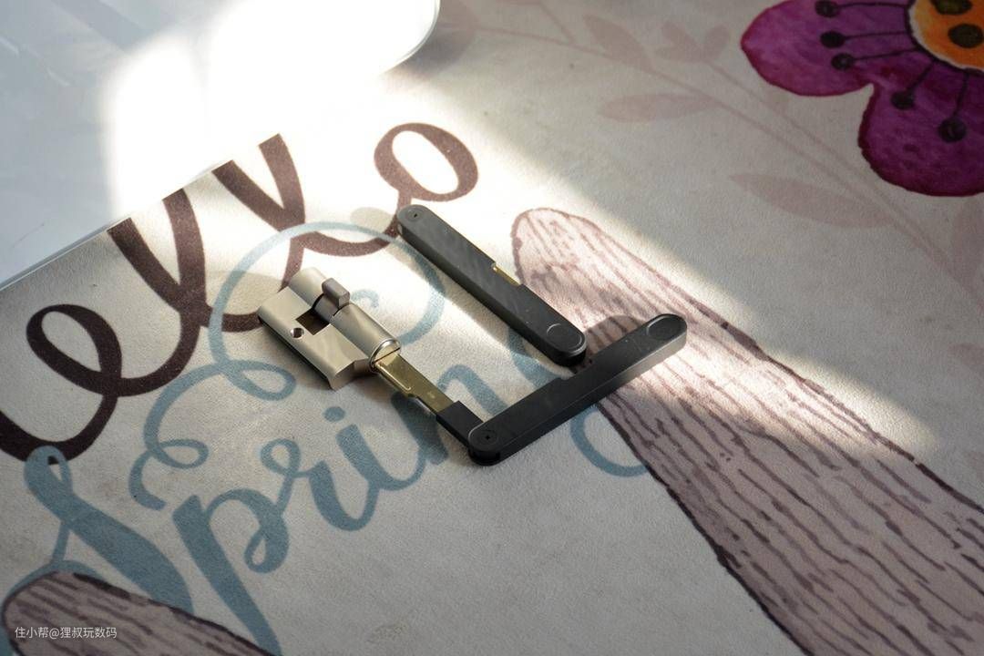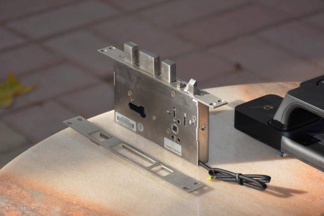 安装这个自己还真搞不定,得等师傅上门,为什么说等呢,我是县城用户,这款指纹锁的安装需要市区的售后上门安装,所以预约后等了2天师傅上门安装的。标配的锁体是国标非天地勾的,可以看到细节做工非常棒,特别是锁舌部分经过特殊处理可以防止卡片开锁。另外单锁体就应用了包括离合内置和方钢360°空转在内的三大安全设计,锁体升级全面防止暴拆。