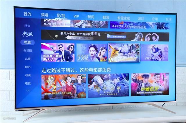 在主界面下,主要分为:我的、频道、影视、VIP、新闻,教育、智能家居,游戏,应用和发现。在每个类目下,全部的资源分类一目了然,各大院线影视资源,综艺节目等均能在上面找到,小编认为在内容方面还是非常的丰富。视频资源方面主要集成的是腾讯和爱奇艺的视频,而且除此之外小编发现还可以使用相同内置的应用商店来下载相关的视频软件,来丰富自己的资源。