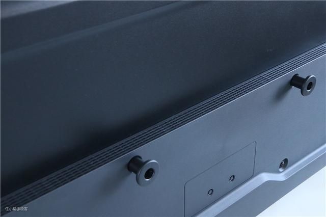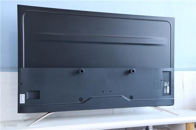 而整个机身背面采用全黑色设计,背板为金属材质,表面更是做了磨砂喷涂等处理,用手摸上去很舒适,设计了多条加强筋,应该是为了让背板有不错的支撑,这样的设计不会像别的电视那样一碰就晃动,这个设计也是小编满意的一个地方。