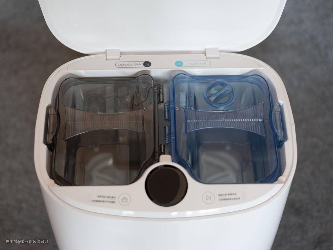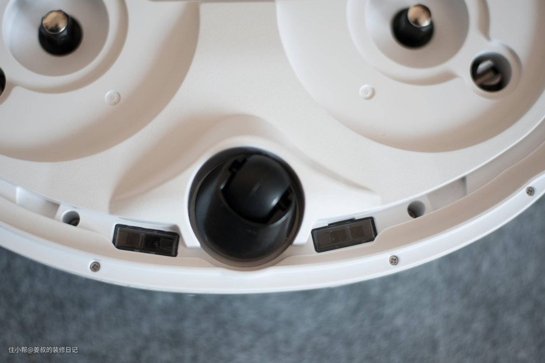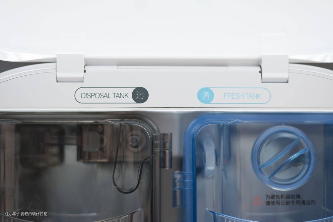 基站最核心的就是中间的水箱,里面包含了一个清水箱和一个污水箱,主要用于拖地模式下的拖布清洗,独立水箱的设计避免了二次污染。