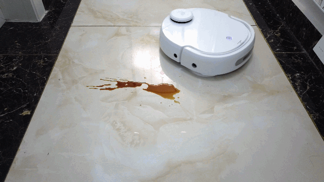 使用拖地功能,我觉得最大的便捷之处就是:再也不用手洗拖布了!在实际使用的时候,大多数情况下的清洁没有任何问题,再也不用来回跑来洗拖布然后继续拖地了,一切都在云鲸掌控之中了。但是如果遇到像下面这种重度污染(我放的老抽),就需要设置多次清洁,一次走过后,还会留下痕迹,记得设置好拖地次数,两次基本没问题。