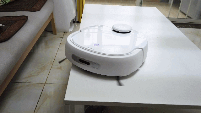 在前面静态体验环节,我给大家说过云鲸带有4个悬崖感应器,能够感知到不同方向,确保使用安全,就像我直接放在茶几上,云鲸也能顺利感知到前面的危险。