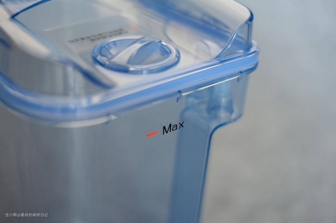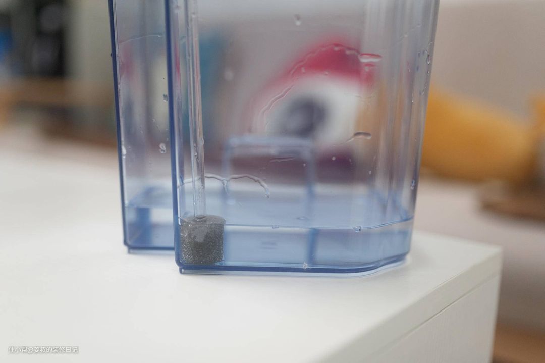 水箱的做工也非常棒,质感很好,卡扣的阻尼感都非常好,出水口密封也做得很细致,使用过程中没有出现漏水或者渗水的情况,而且在水箱上还标注了水量提醒标记,细节好评。