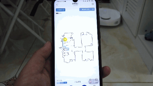 首次使用时,机器人会室内进行雷达扫描建图,建图的同时可以在APP客户端实时查看,而且扫描结果与实际户型还是很精准的。