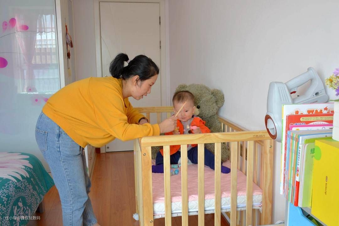 看看小外甥女刚来就座里面了,刚一岁,老大还不到三岁,每到晚上俩娃在一起闹腾,别提多气人了,希望这个小床可以缓解下妹妹的压力吧。