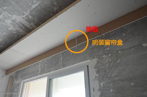 如果这样的窗帘盒不是通长的,而是由几片木板接出来,中间留有缝隙,那么接缝处百分百会开裂↓↓↓