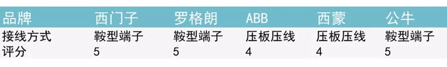 西门子、罗格朗、公牛是鞍型端子接线;ABB、西蒙是压板压线,减1分。