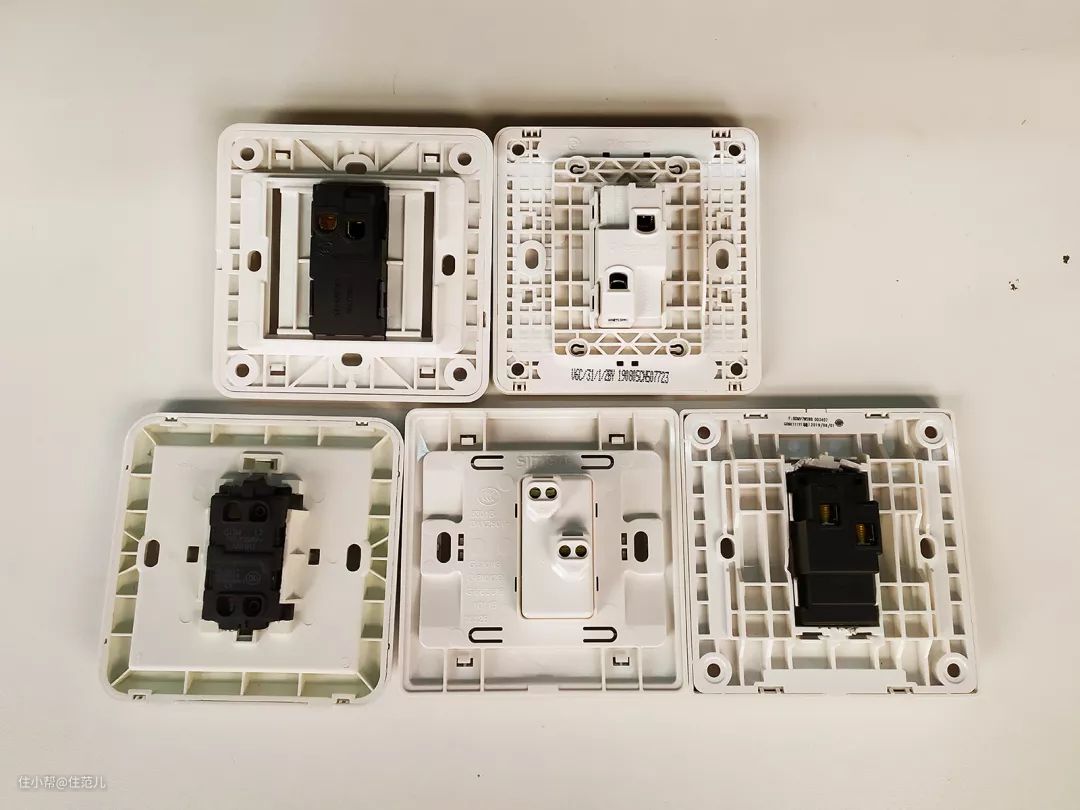 翘板,从左到右是西门子、罗格朗、ABB、西蒙、公牛 图源:住范儿自摄