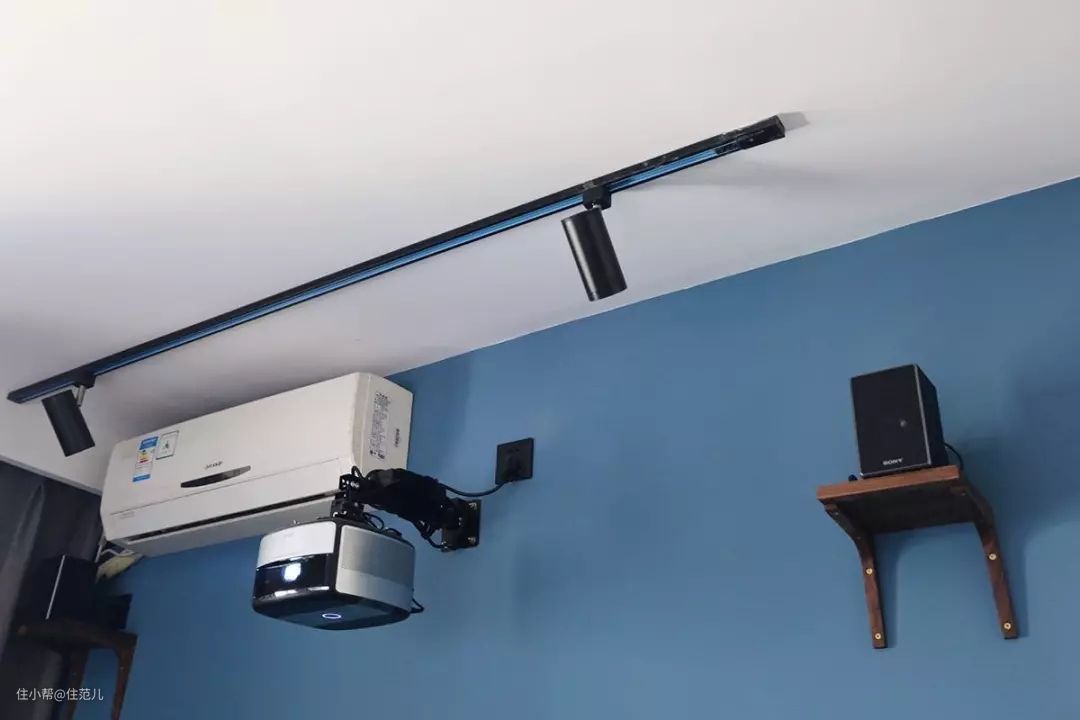 或者墙上做个搁板放投影仪,好处是不占地,插座留在投影仪附近即可。