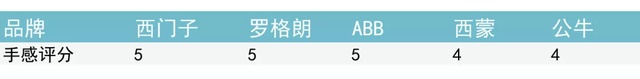外形设计上,西门子、罗格朗、ABB都很漂亮;公牛模仿西门子但线条僵硬,西蒙两侧有凹槽设计显得累赘,各减1分。
