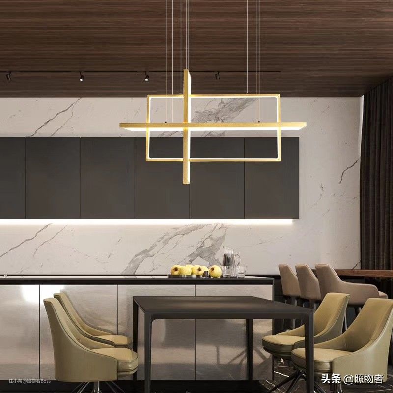 装饰吊灯安装时可以把灯具位置降低,灯具底面离餐桌表面约一米左右,这样通过柔和的光线,在限定空间的里可以获得亲切的光感。